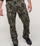 98% cotton/2% elastane. Twill fabric with peached finish. Belt loops. Zip fly with concealed button over. Two side pockets. Rear and two side leg pockets with tear release flaps. Specifically treated to appear aged. Due to the dyeing process each garment is unique.